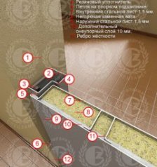 Fire-fighting front doors is composed of a half of a boxed type and a rigid frame which is made of a complex steel sheet and simultaneously forms the cash. The interior half of the structure is filled with high quality intact thermal insulation materials that meet fire safety requirements. In general, the production process uses: