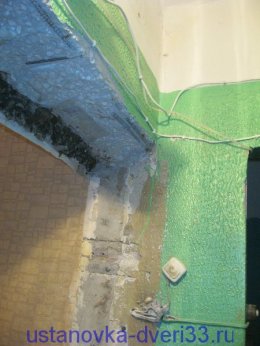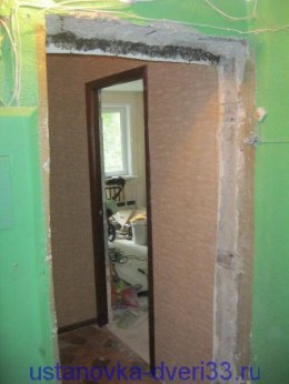 Take off the tape and turn the door open. In this case, the door will be attached to the wall by means of a box of six ears with openings. There's still a way when there's a hole in the doorbox. Algorithm of the installation and in both cases the same.